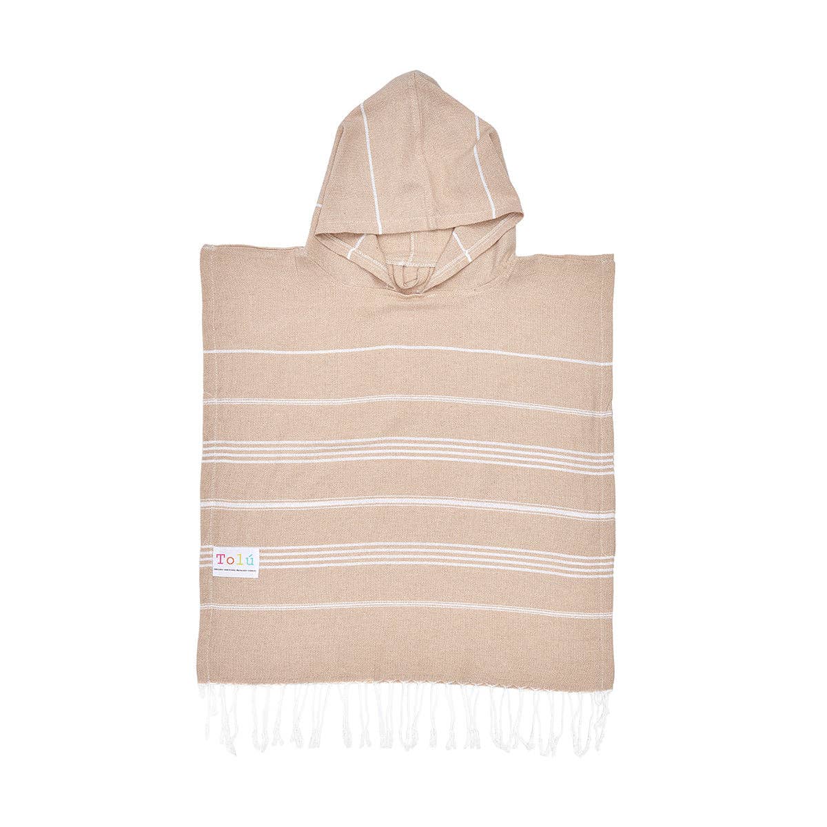 Introducing the Beige Kids Hooded Beach Towel from Tolu Australia, crafted to keep your little ones cozy and dry after their aquatic adventures.