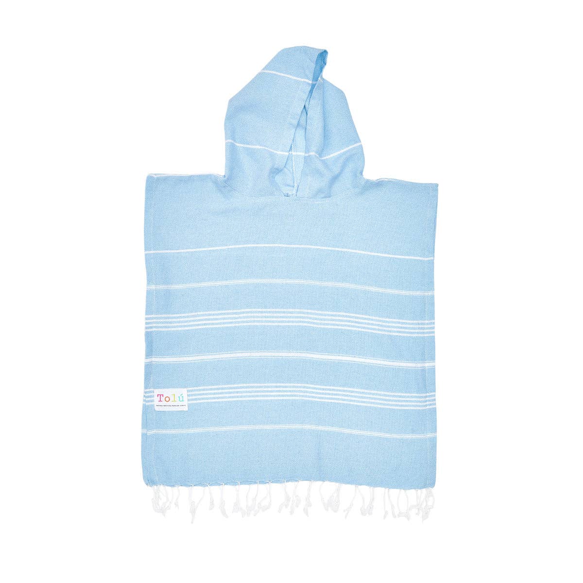 Introducing the Baby Blue Kids Hooded Beach Towel from Tolu Australia, crafted to keep your little ones cozy and dry after their aquatic adventures.